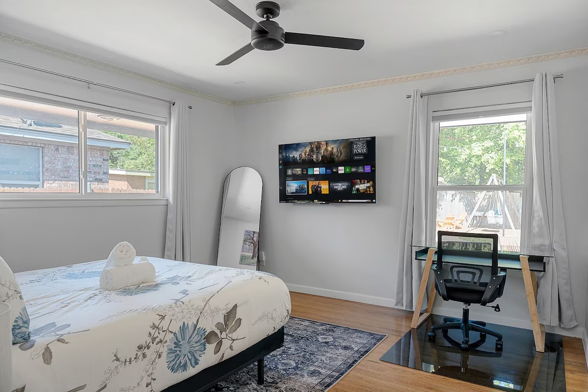 Unwind in this stylish Dallas retreat featuring a full game room, home gym, and blazing-fast WiFi—perfect for work or play. Enjoy spacious living areas, modern decor, and entertainment for all ages. Whether you’re breaking a sweat, gaming with friends, or streaming your favorite shows, this home has it all. Conveniently located near parks, dining, and downtown attractions, it’s your perfect Dallas getaway.